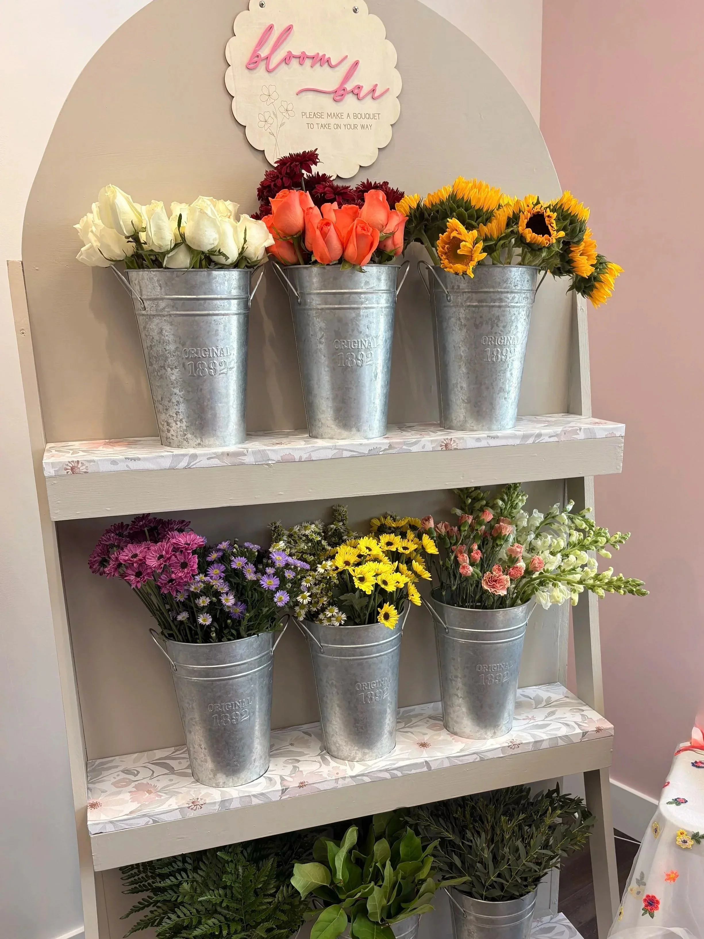 Our team brings the stunning bloom bar, a wide selection of fresh flowers, wrapping paper, vases, scissors, ribbons, and any add-ons you’ve selected. We handle all the setup with precision and care.Guests Create Their Own Bouquets